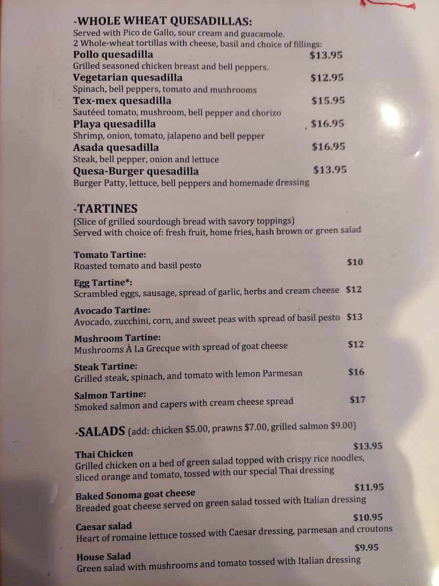 The menu is a culinary journey, featuring a variety of options for breakfast, lunch, and dinner. Start your day with their delightful California frittata, brimming with fresh veggies. For lunch, don't miss the turkey and avocado sandwich or the renowned quesadillas filled with flavors from TexMex to Pollo.